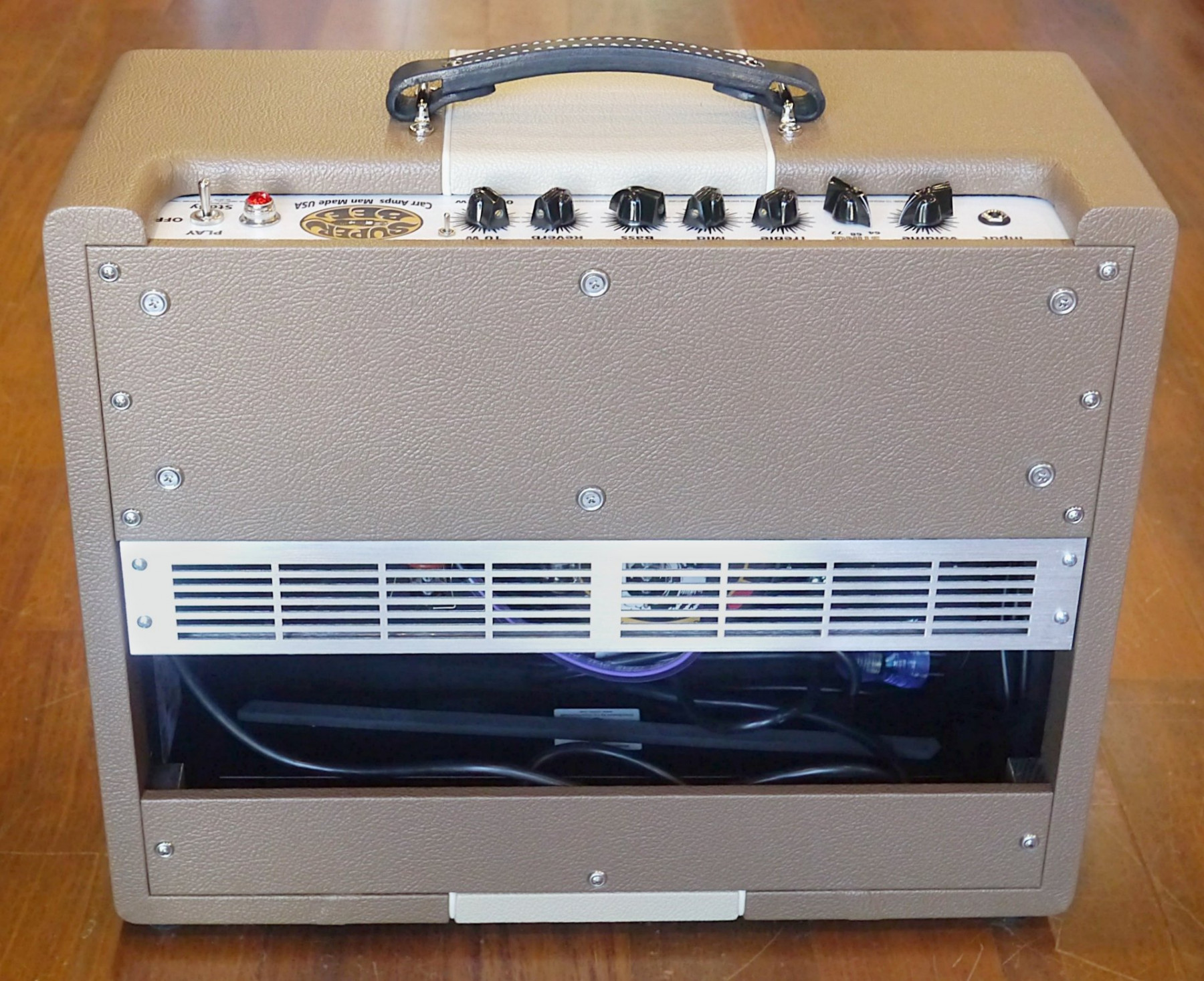 The Carr Super Bee 1x12 Combo is a boutique, hand-wired amp that nails touch-sensitive vintage tones with modern reliability. This example is finished in a stunning custom Coco/Cream colorway and delivers rich cleans, harmonically complex breakup, and exceptional dynamic response—perfect for players who live on the edge of clean and overdrive. A compact, gig-friendly amp with unmistakable Carr tone and style. - Reviews