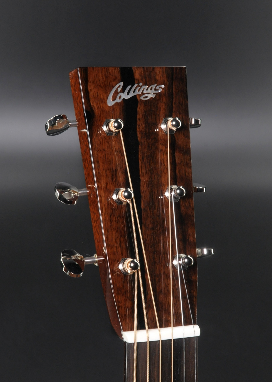 -Ebony peghead overlay with inlaid Collings logo