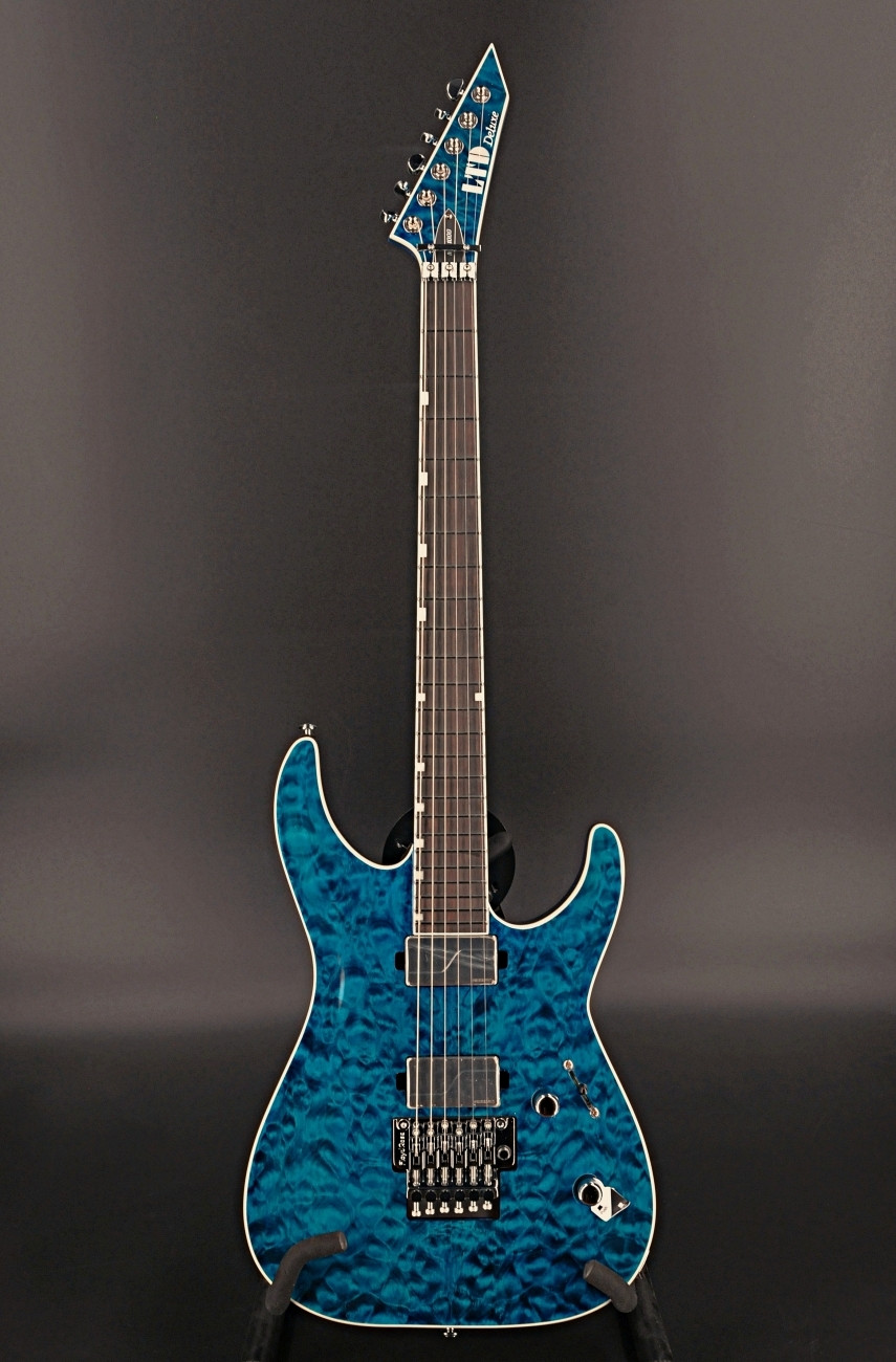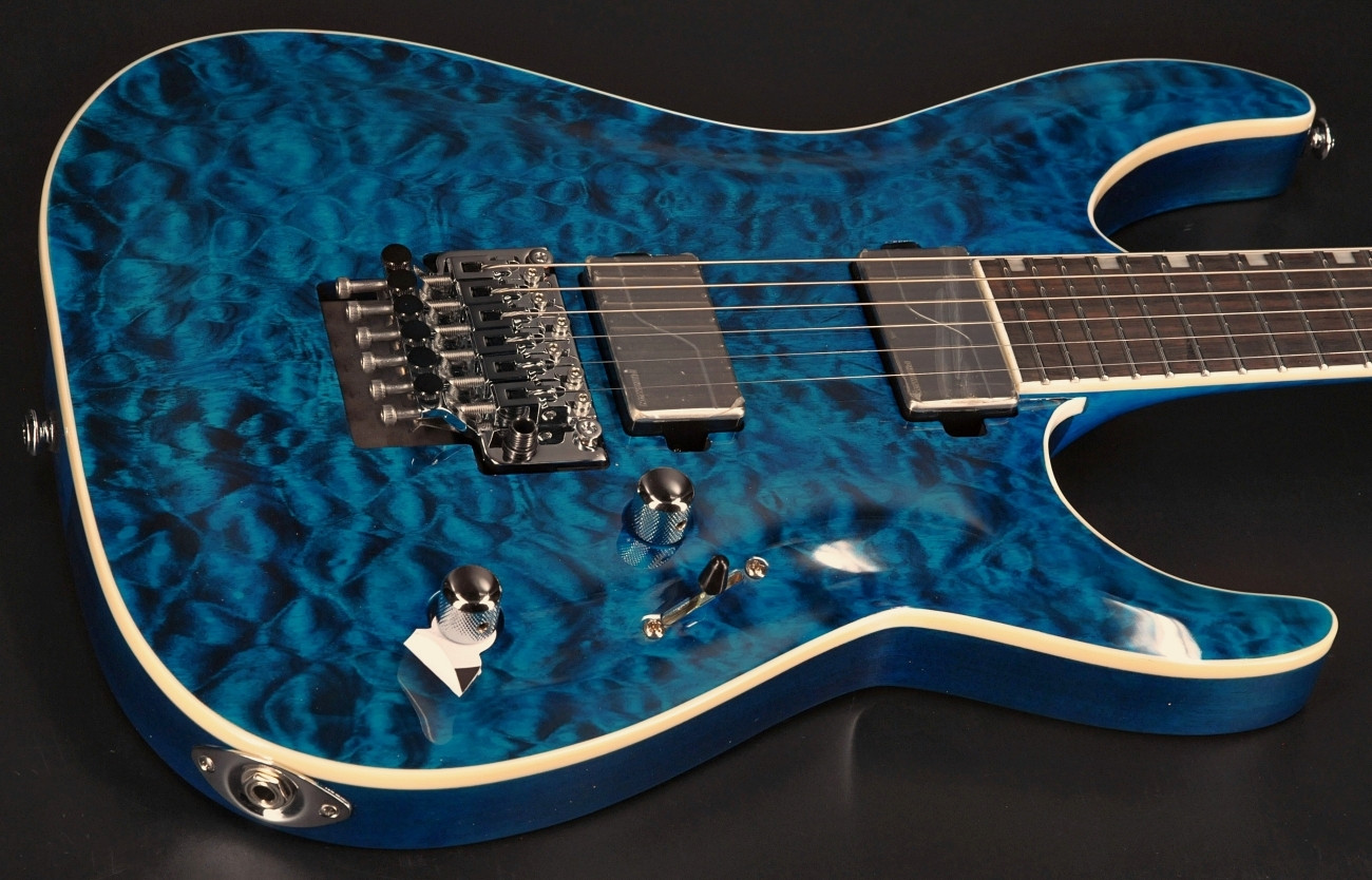 Components on the MH-1000 include a Floyd Rose 1000SE bridge with stainless steel screws, Grover tuners, and a set of direct-mount Fishman Fluence Modern Humbuckers (alnico in the neck position, ceramic in the bridge), with a push-pull control to activate each pickup’s second voicing, and brushed stainless steel covers.