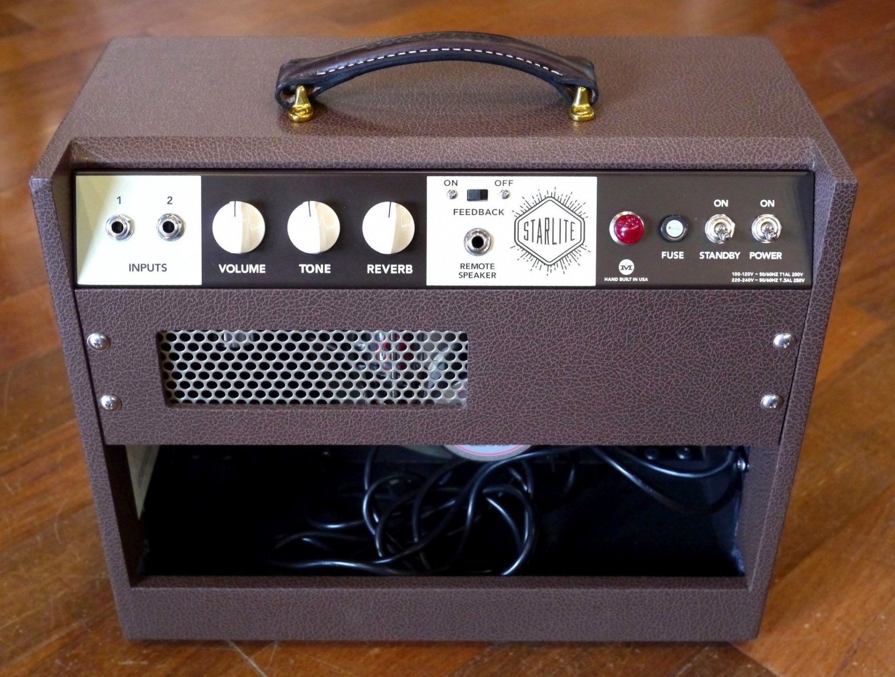 Powered by a single 12AX7 preamp tube and a 6L6 power tube, the Starlite Reverb 10 delivers 8 watts of Class A output through a Magnatone Custom 10-inch ceramic magnet speaker. The larger cabinet and upgraded power section provide added clarity and volume, making it equally at home in the bedroom, studio, or on small stages.