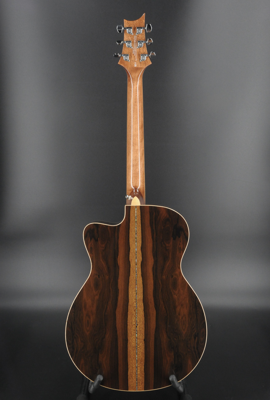 Plugged in, the PRS-Voiced Fishman Presys VT pickup system delivers dynamic, organic tone and allows players to easily take this guitar from rehearsal to the stage. This electronics system features an undersaddle pickup and soundhole mounted preamp with easy-to-access volume and tone controls.