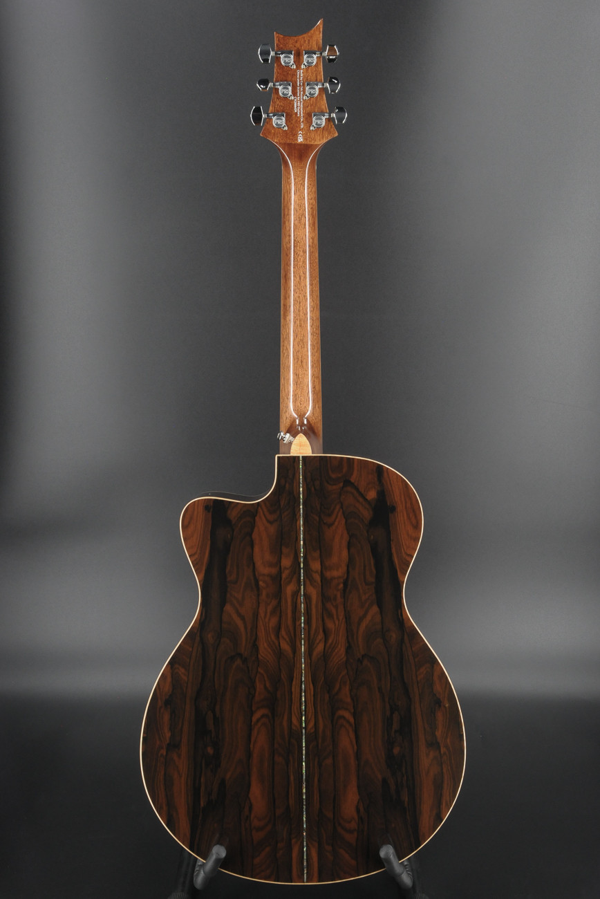 Plugged in, the PRS-Voiced Fishman Presys VT pickup system delivers dynamic, organic tone and allows players to easily take this guitar from rehearsal to the stage. This electronics system features an undersaddle pickup and soundhole mounted preamp with easy-to-access volume and tone controls.