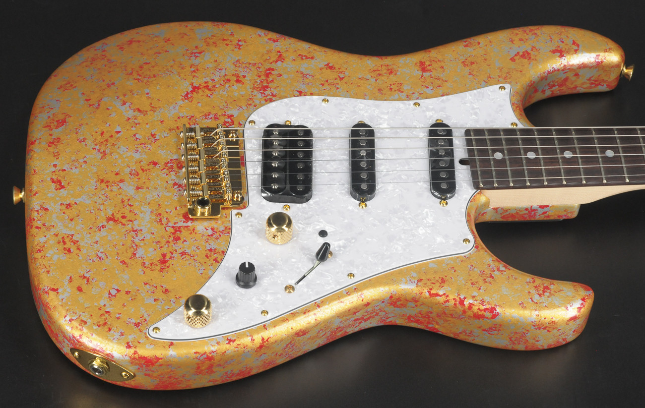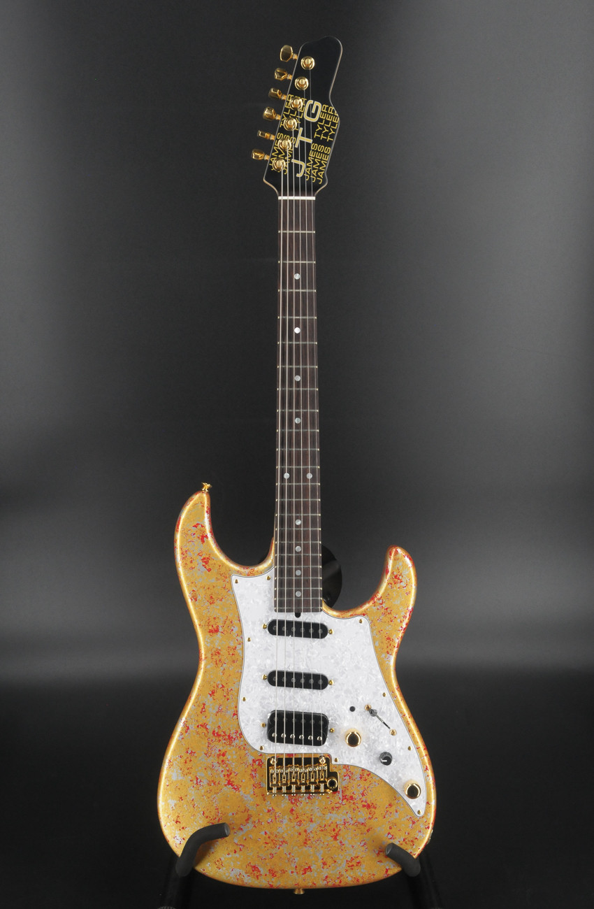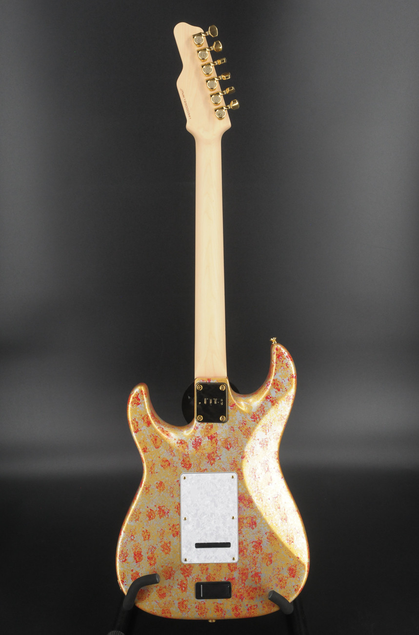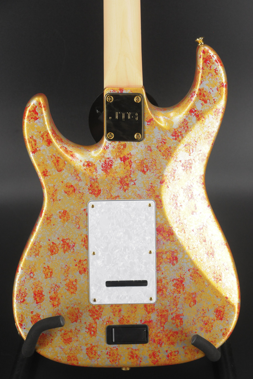 - Molten Iron- 2-piece Alder body- Canadian Maple neck- Indian Rosewood fretboard w/ Tyler rolled edges- 10"-14" Radius- STD Thin C- 42mm Bone Nut- White Mother of Pearl inlay- Luminlay side dots- Jescar FW51100 frets- JTG 5500 SN neck pickup- JTG 5500 SM middle pickup- JTG Super H bridge pickup- Dome Knobs- 2 Post custom JTG bridge- Custom JTG Locking Tuners- Strings D’Addario 10-46- 5-way CTS 500k Vol 250k Tone- JTG custom midboost with bypass- Hardshell case
