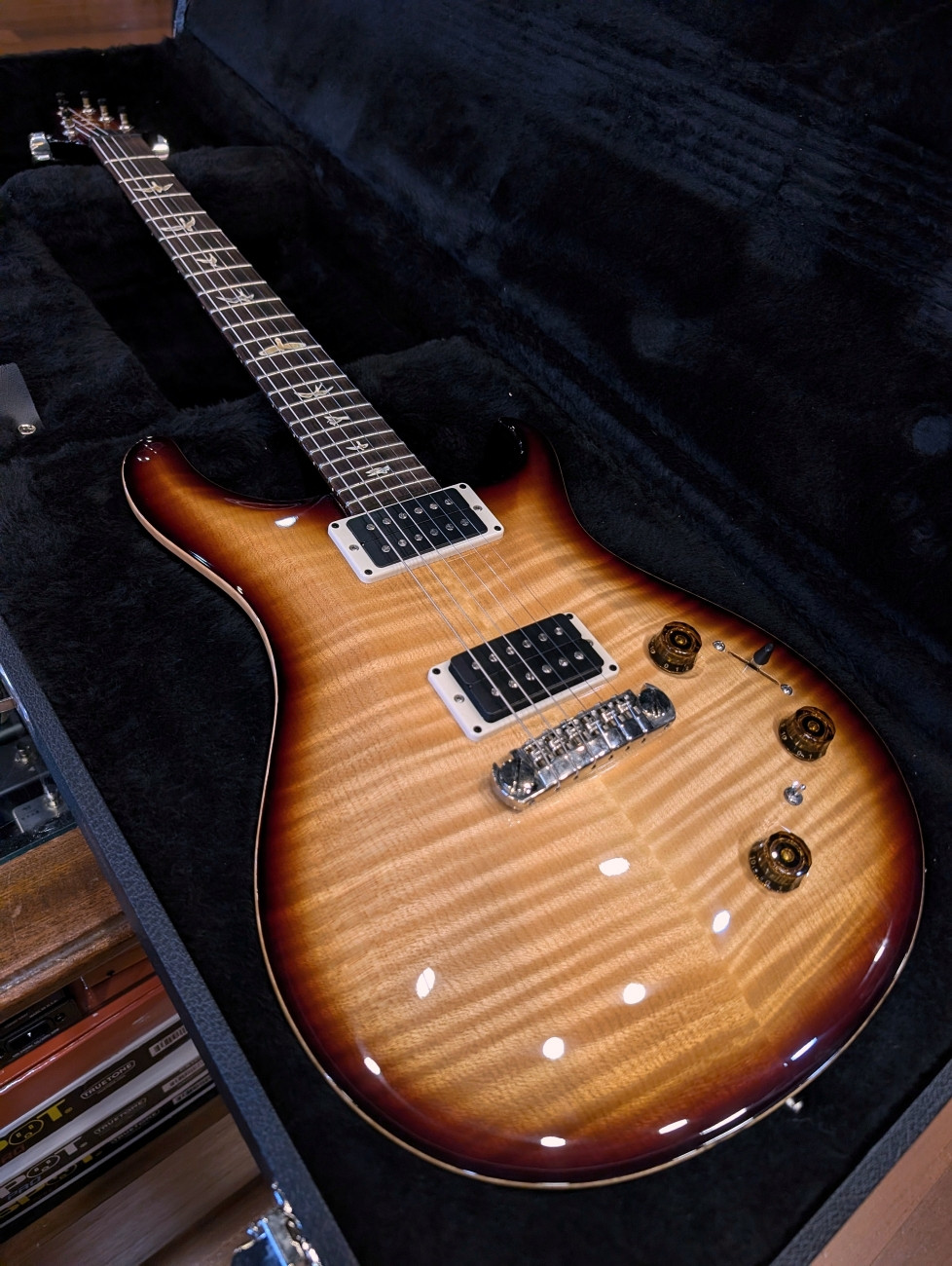 The Boyd Burst finish is exceptionally rare. The maple top has beautiful flame with wide, deep 3-D figure that shimmers with movement depending on the light and angle. What makes this one truly unique is that PRS also bursted the back of the neck, body, and headstock, giving it a fully finished look.