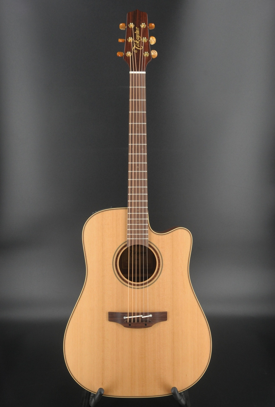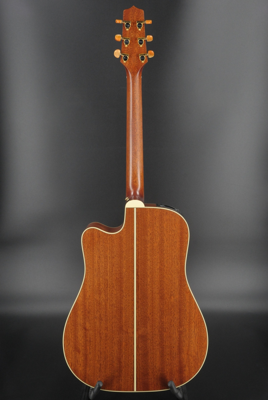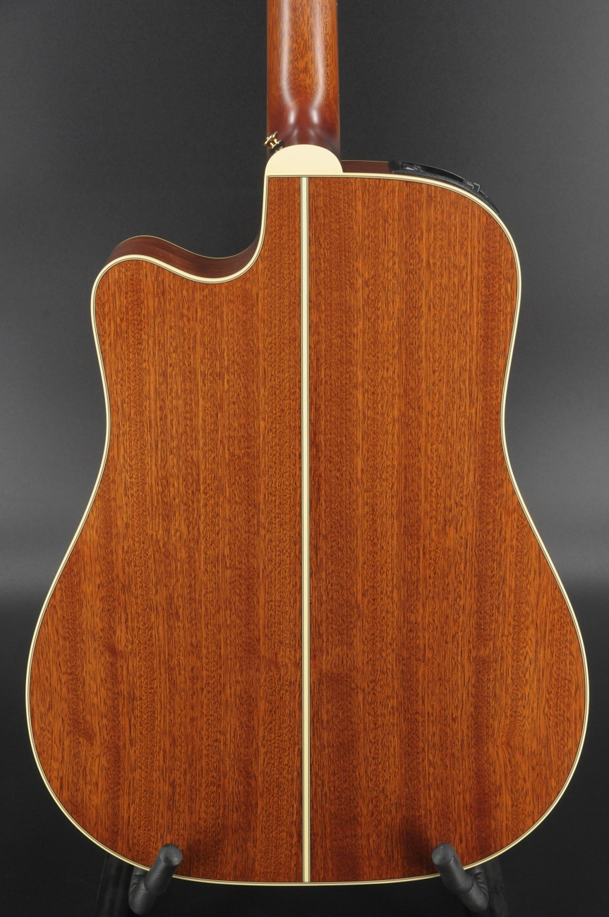 Other premium features include a solid sapele back, mahogany neck, rosewood fingerboard with wood “dot-in-dot” inlays, gold tuners with amber buttons, natural satin finish and the highly acclaimed CT4B II preamp system with three-band EQ, volume control and built-in tuner.