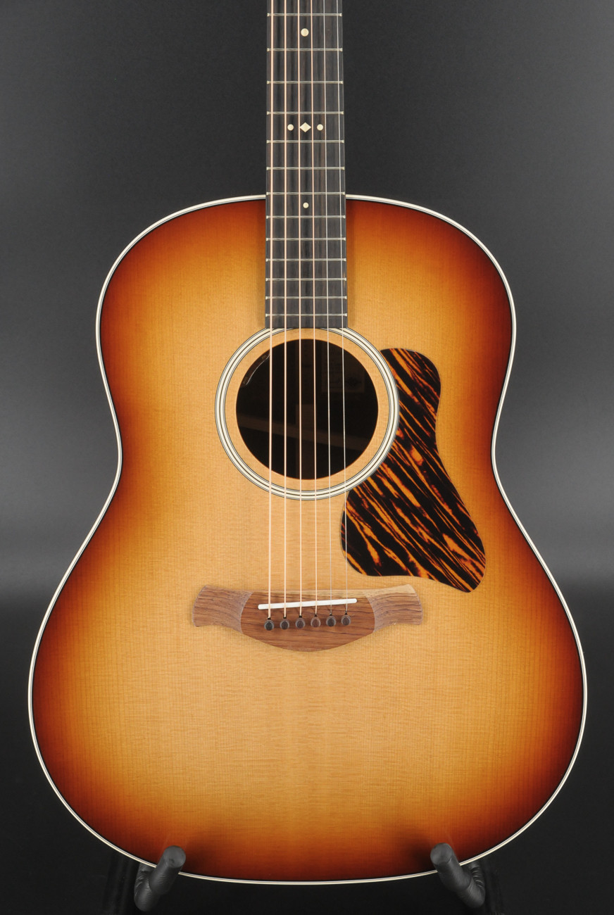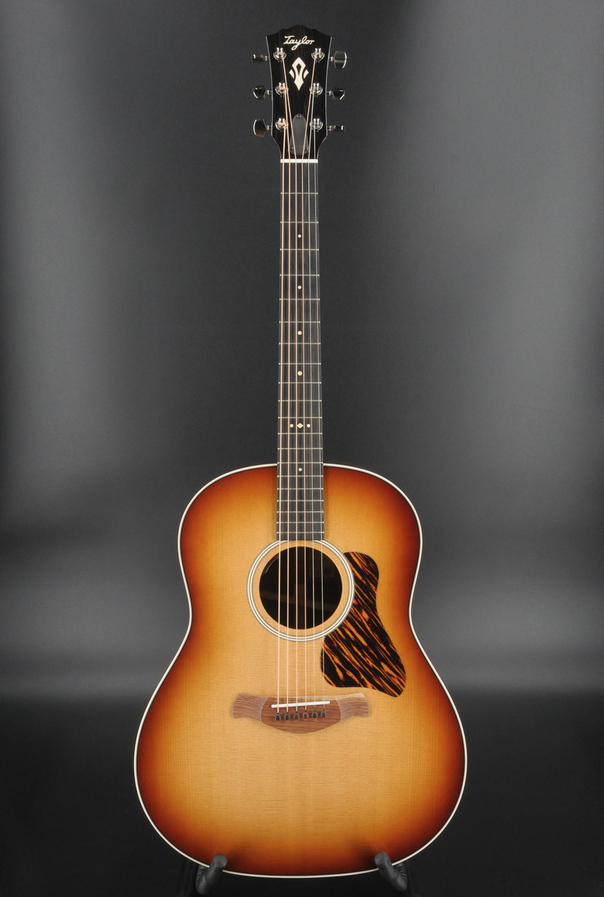 This Gold Label guitar sports Taylor's revolutionary Action Control Neck, which combines the playability of the Taylor neck profile with a simple adjustment bolt that makes it easy to dial in your preferred feel in seconds. Visual appointments reflect the guitar's old-school sound, including a firestripe pickguard, a Curve Wing bridge in Honduran rosewood with Indian rosewood bridge pins, and cream-colored binding, rosette and Crest inlays. This model ships with LR Baggs Element VTC electronics for warm, clear plugged-in sound and a deluxe hardshell case with a British Cocoa exterior.