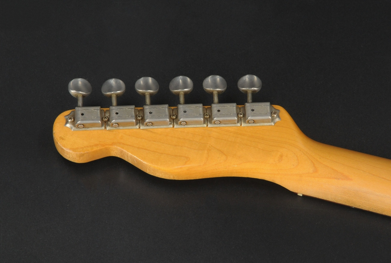 This is a genuine 1966 Fender Telecaster neck in very clean condition, stamped "3 JAN 66B". The frets are not original; they show some wear but still have plenty of life left. The Kluson Deluxe tuners and string tree are original, which is a big plus.
